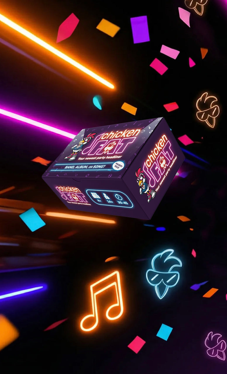We're Michael and Jamie, a husband-and-wife team who turned a silly inside joke into a gloriously chaotic party game. It started with one question - "Band, album, or song?" - and grew into years of laughter, road-trip battles, and ridiculous creativity with friends and family.